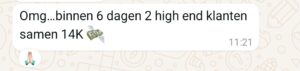 Dankzij Sabine creëerde ik een high-end aanbod dat volledig aansluit bij mijn expertise en de kern van mijn werk. Ze heeft me niet alleen geholpen mijn aanbod te versterken, maar ook mijn visie en impact verder uit te breiden. Binnen 6 dagen had ik mijn investering meer dan terugverdiend!